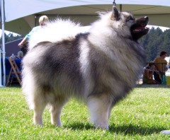 Strider won Best in Specialty Show at the Keeshond Club of B.C. Specialty. His pedigree combines the best dogs that we have ever produced, and includes 17 generations of known BIS and BISS winners. Tommy's genes represent 61% of the ancestry. Strider is co-owned with and entertains Doreen Marsh, of Victoria, Canada. He is shown here at 12 and 23 months of age.